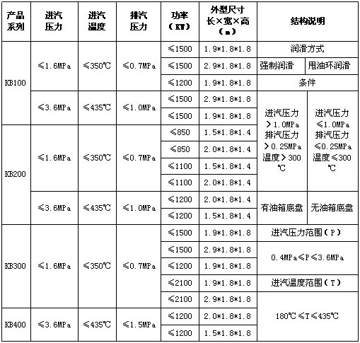 ◇快裝小汽輪機產(chǎn)品系列及技術(shù)參數