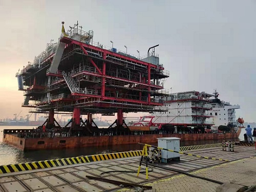 在捷能集團公司重點(diǎn)關(guān)注和大力支持下,青島捷能石油裝備技術(shù)有限公司于2021年10月30日順利完成承建的中國石油集團埕海1-1海洋平臺東模塊結構以及工藝管線(xiàn)預制安裝、設備安裝項目,裝船拖航出海。
