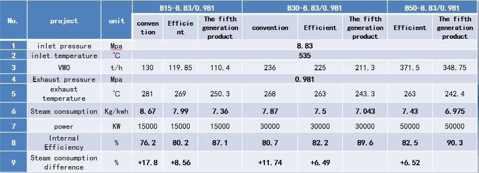The fifth generation high-efficiency reaction turbine technology with intelligent design as its core is developed in cooperation with universities such as Xi'an Jiaotong University, based on the digestion and absorption of foreign high-efficiency reaction turbine technology. The fifth generation steam turbine has reached the advanced level in China and can meet various market demands for steam turbines such as solar thermal power generation, air turbines, waste to energy generation, combined cycle, biomass, and cogeneration, achieving high efficiency, environmental protection, and digitization. It has the technical characteristics of high thermal efficiency, compact structure, fast installation, rapid start-up, superior performance, and high reliability. The thermoelectric conversion efficiency of the product is 6-11 percentage points higher than the current domestic products of the same model, which is at the world's advanced level. The external dimensions of the product are 20-30% smaller than the current domestic model, and the weight is reduced by 30-50%; And axial exhaust plane layout can be adopted.